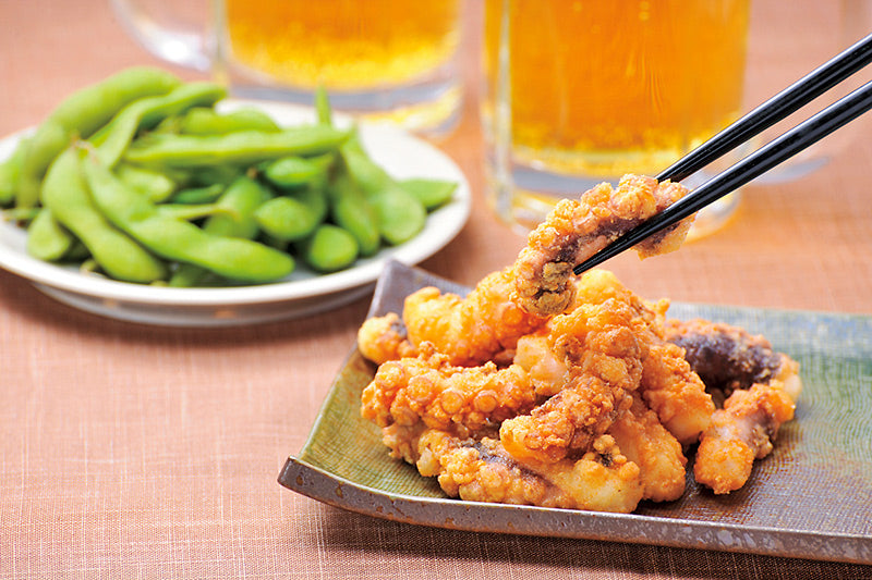 業務用サイズの冷凍たこ唐揚げです。1kgの大容量パックで、居酒屋やレストランなどの飲食店はもちろん、パーティーやイベントなどの大人数での食事会にも最適です。たこの食感を活かした衣で包まれ、カラッと揚がった一口サイズの唐揚げは、ビールやお酒のおつまみとして人気があります。170度の油で約2-3分揚げるだけで、外はサクサク、中はジューシーな食感が楽しめます。たこの旨味と食感を存分に味わえる一品です。冷凍庫で保存可能で、必要な分だけ取り出して調理できる便利な業務用パックです。居酒屋メニューの定番として、またはホームパーティーの一品として、幅広いシーンでご利用いただけます。